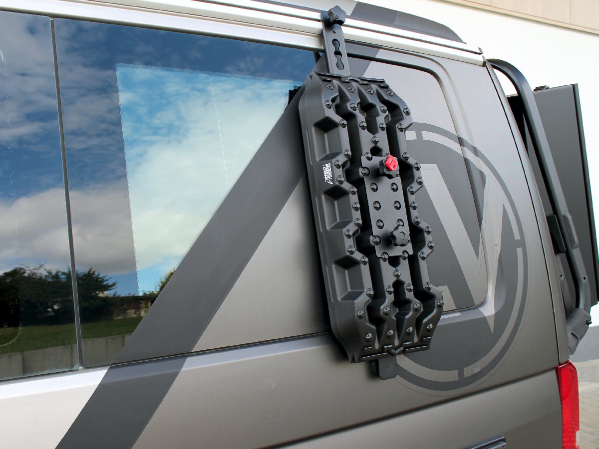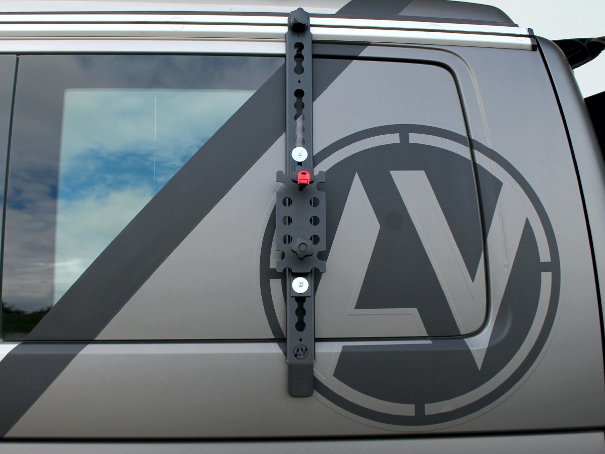 Entdecke das innovative Back-Rack für deinen Original VW-Logo Fahrradträger! Entwickelt von Adventure Van, bietet dieses Produkt zahlreiche Vorteile und Alleinstellungsmerkmale.Die CNC-gefrästen Aluminiumhalter wurden speziell an den Träger angepasst und sorgen für eine robuste Befestigung. Die Edelstahlschienen ermöglichen vielfältige Befestigungsmöglichkeiten für zusätzliches Equipment wie Wassertanks, Reserverad, Stauboxen oder Werkzeug.Die Montage des Back-Racks ist kinderleicht und schnell erledigt. Einfach die Aluhalter über das Profil des Fahrradträgers stecken, das Gegenstück von hinten anbringen und festschrauben – schon sitzt der Halter sicher. Die Edelstahlschienen werden einfach über den Halter geschoben, festgeschraubt und können dank der Langlöcher individuell angepasst werden.Das pulverbeschichtete Design in Schwarz verleiht deinem Bulli eine coole Offroad-Optik. Mit dem Back-Rack erhalten Sie nicht nur mehr Platz und Befestigungsmöglichkeiten, sondern auch modulare Erweiterbarkeit. Egal ob du längere Reisen planst oder zusätzliches Equipment transportieren möchten – das Back-Rack passt sich deinen Bedürfnissen an. Erhältlich in praktischen 2er oder 4er Sets, lässt es sich mit einer Vielzahl von Erweiterungen kombinieren. Investiere in das Back-Rack und erleben die vielseitigen Möglichkeiten, die es dir bietet. Mache dein Abenteuer komplett und sichere dir noch heute dein eigenes Back-Rack!Nur kompatibel mit dem original VW Logo Fahrradträger mit der Teilenummer: 7H0071104 oder 7E0071104B.Daten "Back-Rack"Länge: 920mmBreite: 45mmGewicht: 2000gMaterial: Edelstahl / Aluminium Farbe: RAL 9005 schwarzVorteile "Back-Rack"Einfache und schnelle MontageSchöne Optik und robuste Oberfläche dank hochwertiger Pulverbeschichtung100% Made in "Bavaria"Plastikfreier VersandVielseitig einsetzbarErweiterung deines StauraumsModular erweiterbar Das auf den Bilder dargestellte Zubehör dient nur zur Veranschaulichung und ist nicht im Lieferumfang enthalten. Die Montage und Verwendung dieses Artikels erfolgt auf eigenes Risiko. Es liegt keine TÜV-Zulassung vor und wir übernehmen keine Verantwortung für mögliche Schäden am Fahrzeug.