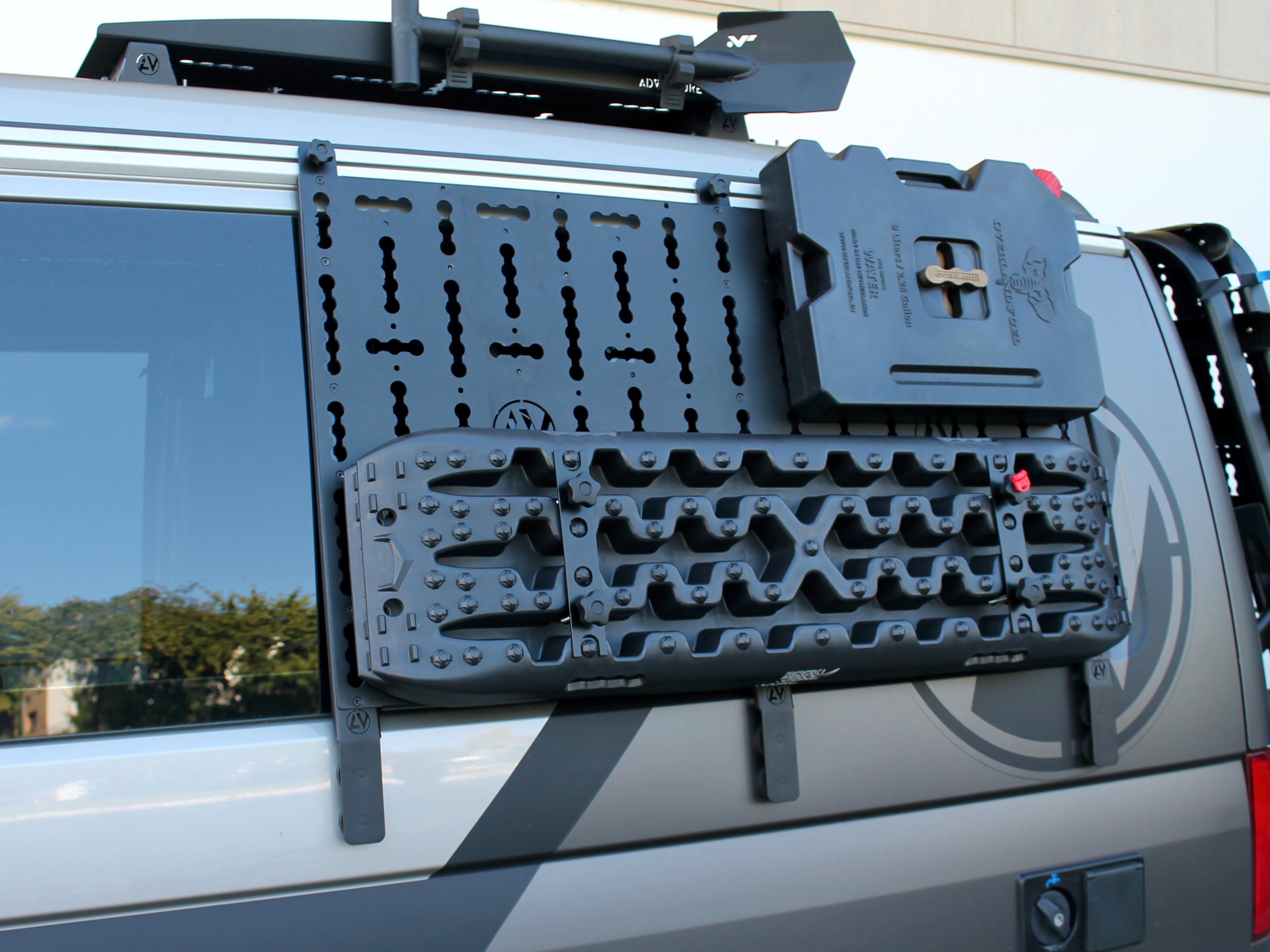 Entdecke das innovative Back-Rack für deinen Original VW-Logo Fahrradträger! Entwickelt von Adventure Van, bietet dieses Produkt zahlreiche Vorteile und Alleinstellungsmerkmale.Die CNC-gefrästen Aluminiumhalter wurden speziell an den Träger angepasst und sorgen für eine robuste Befestigung. Die Edelstahlschienen ermöglichen vielfältige Befestigungsmöglichkeiten für zusätzliches Equipment wie Wassertanks, Reserverad, Stauboxen oder Werkzeug.Die Montage des Back-Racks ist kinderleicht und schnell erledigt. Einfach die Aluhalter über das Profil des Fahrradträgers stecken, das Gegenstück von hinten anbringen und festschrauben – schon sitzt der Halter sicher. Die Edelstahlschienen werden einfach über den Halter geschoben, festgeschraubt und können dank der Langlöcher individuell angepasst werden.Das pulverbeschichtete Design in Schwarz verleiht deinem Bulli eine coole Offroad-Optik. Mit dem Back-Rack erhalten Sie nicht nur mehr Platz und Befestigungsmöglichkeiten, sondern auch modulare Erweiterbarkeit. Egal ob du längere Reisen planst oder zusätzliches Equipment transportieren möchten – das Back-Rack passt sich deinen Bedürfnissen an. Erhältlich in praktischen 2er oder 4er Sets, lässt es sich mit einer Vielzahl von Erweiterungen kombinieren. Investiere in das Back-Rack und erleben die vielseitigen Möglichkeiten, die es dir bietet. Mache dein Abenteuer komplett und sichere dir noch heute dein eigenes Back-Rack!Nur kompatibel mit dem original VW Logo Fahrradträger mit der Teilenummer: 7H0071104 oder 7E0071104B.Daten "Back-Rack"Länge: 920mmBreite: 45mmGewicht: 2000gMaterial: Edelstahl / Aluminium Farbe: RAL 9005 schwarzVorteile "Back-Rack"Einfache und schnelle MontageSchöne Optik und robuste Oberfläche dank hochwertiger Pulverbeschichtung100% Made in "Bavaria"Plastikfreier VersandVielseitig einsetzbarErweiterung deines StauraumsModular erweiterbar Das auf den Bilder dargestellte Zubehör dient nur zur Veranschaulichung und ist nicht im Lieferumfang enthalten. Die Montage und Verwendung dieses Artikels erfolgt auf eigenes Risiko. Es liegt keine TÜV-Zulassung vor und wir übernehmen keine Verantwortung für mögliche Schäden am Fahrzeug.